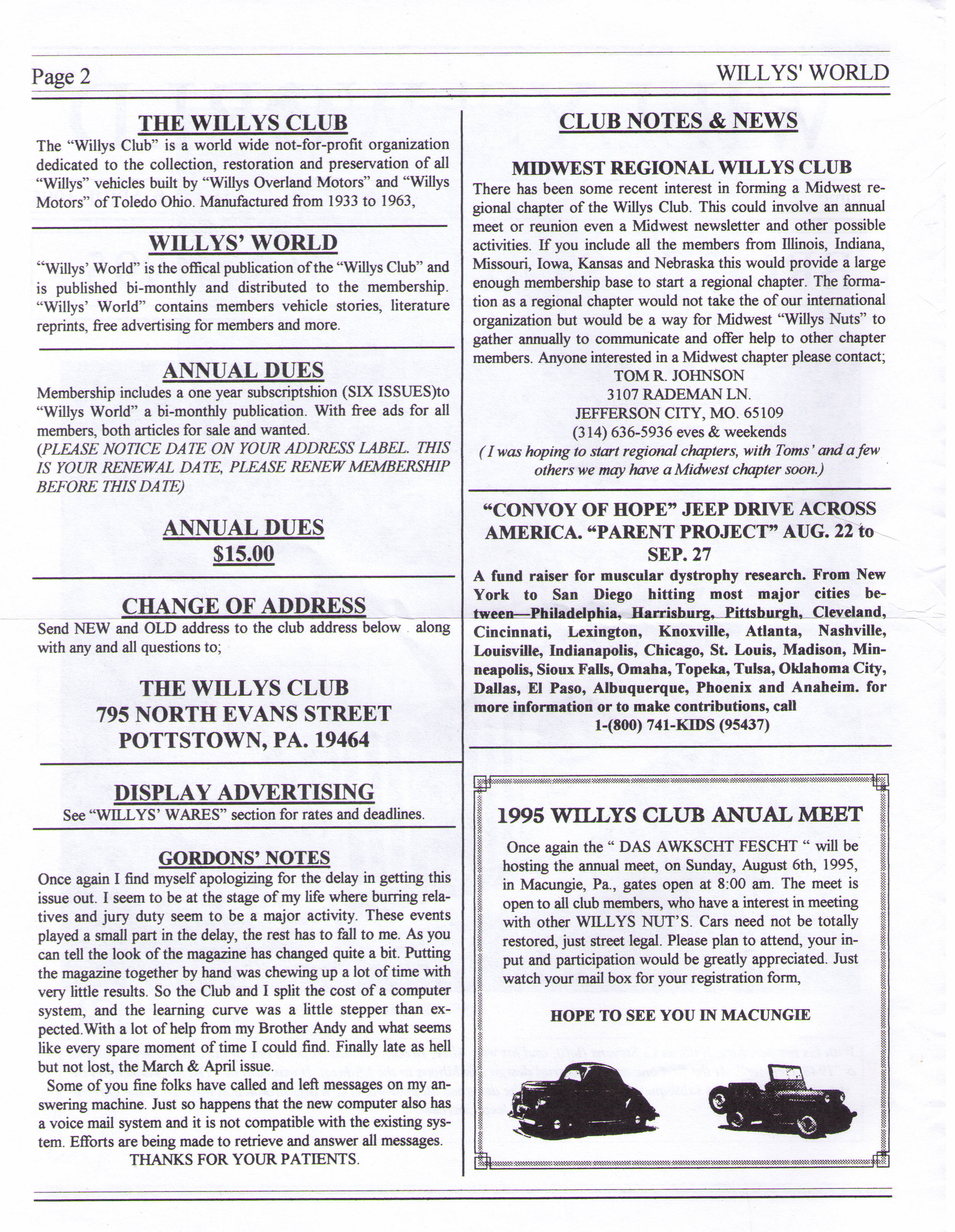 Willys World Newsletter 1995 Volume 22 Number 2 January 29, 2015 Pascal Willys World Newsletter 1995 Volume 22 Number 2;