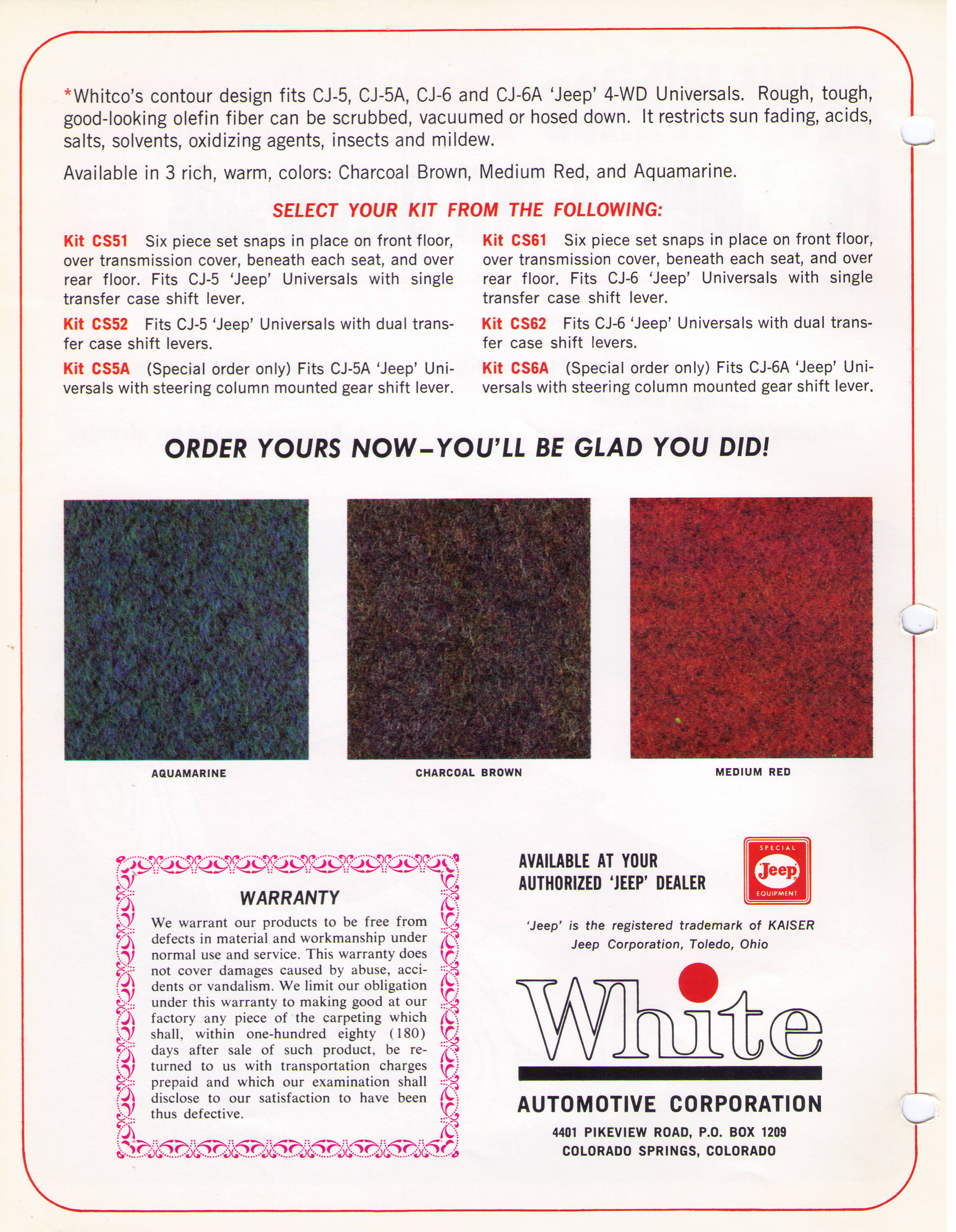 Here is two sheet about Whitco Snap in Carpeting 1967 for Jeep!