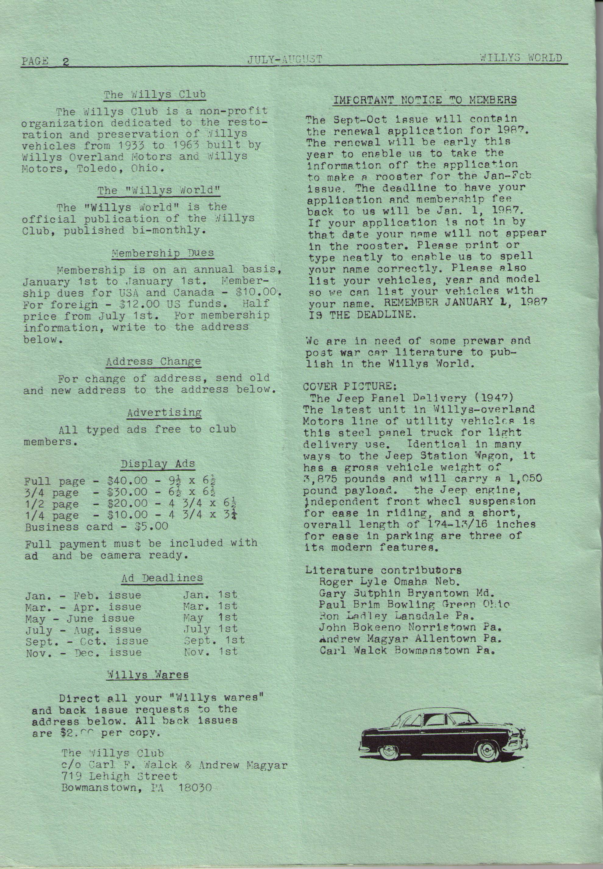 Willys World Newsletter